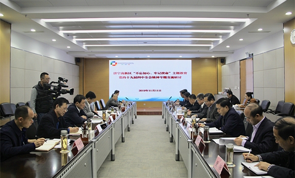 11日上午,高新区召开“不忘初心、牢记使命”主题教育党的十九届四中全会精神专题交流研讨会。会上,传达了党的十九届四中全会精神,相关领导结合工作实际作了研讨发言。区党工委书记刘章箭主持会议并讲话。