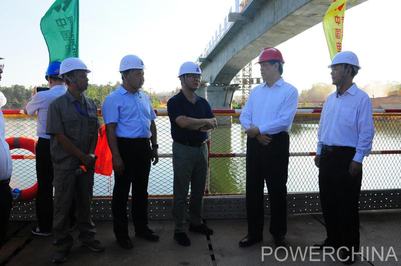 11月16日,在公司副总经理刘源陪同下,中国国家铁路集团有限公司董事长、党组书记陆东福一行到公司承建的中老铁路欣合楠里河特大桥视察调研。