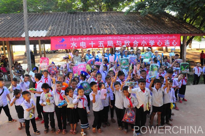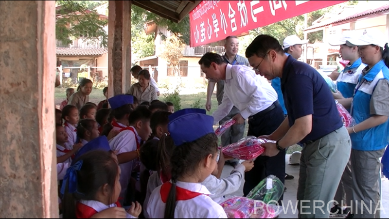 11月16日,中国电建中老铁路建设者来到距离承建的欣合楠里河特大桥200米的帮扶点——欣合小学,与全体师生举行“心连心”联谊活动。公司副总经理刘源参加了相关活动,和志愿者们一起向小学生发放了书包、文具盒、签字笔、笔记本等学习用品,勉励小学生们好好学习。
