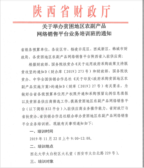 关于举办贫困地区农副产品网络销售平台业务培训班的通知