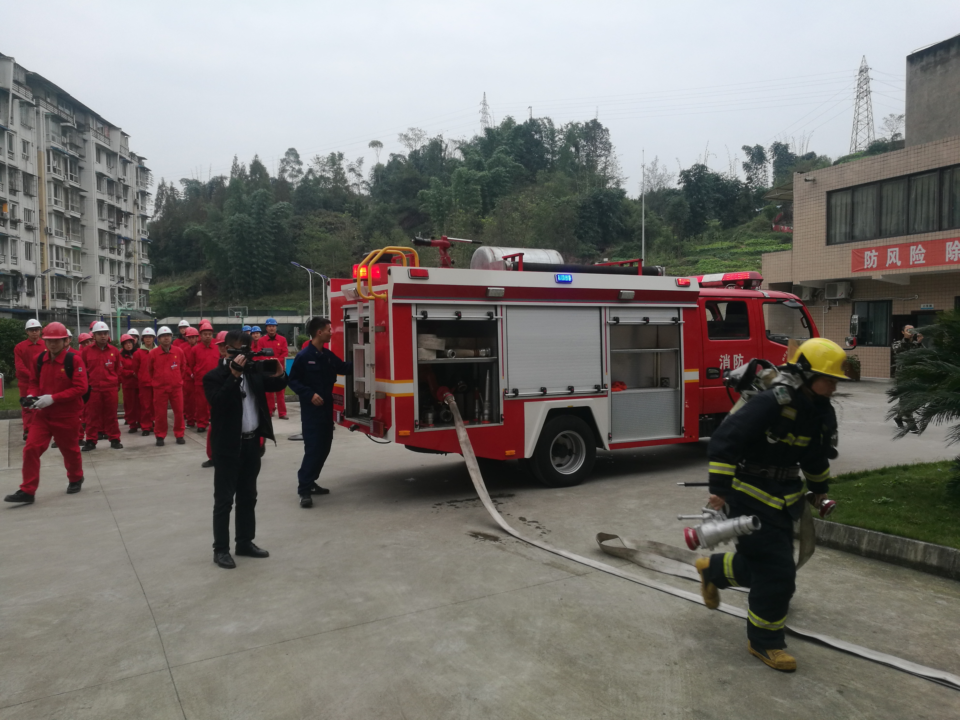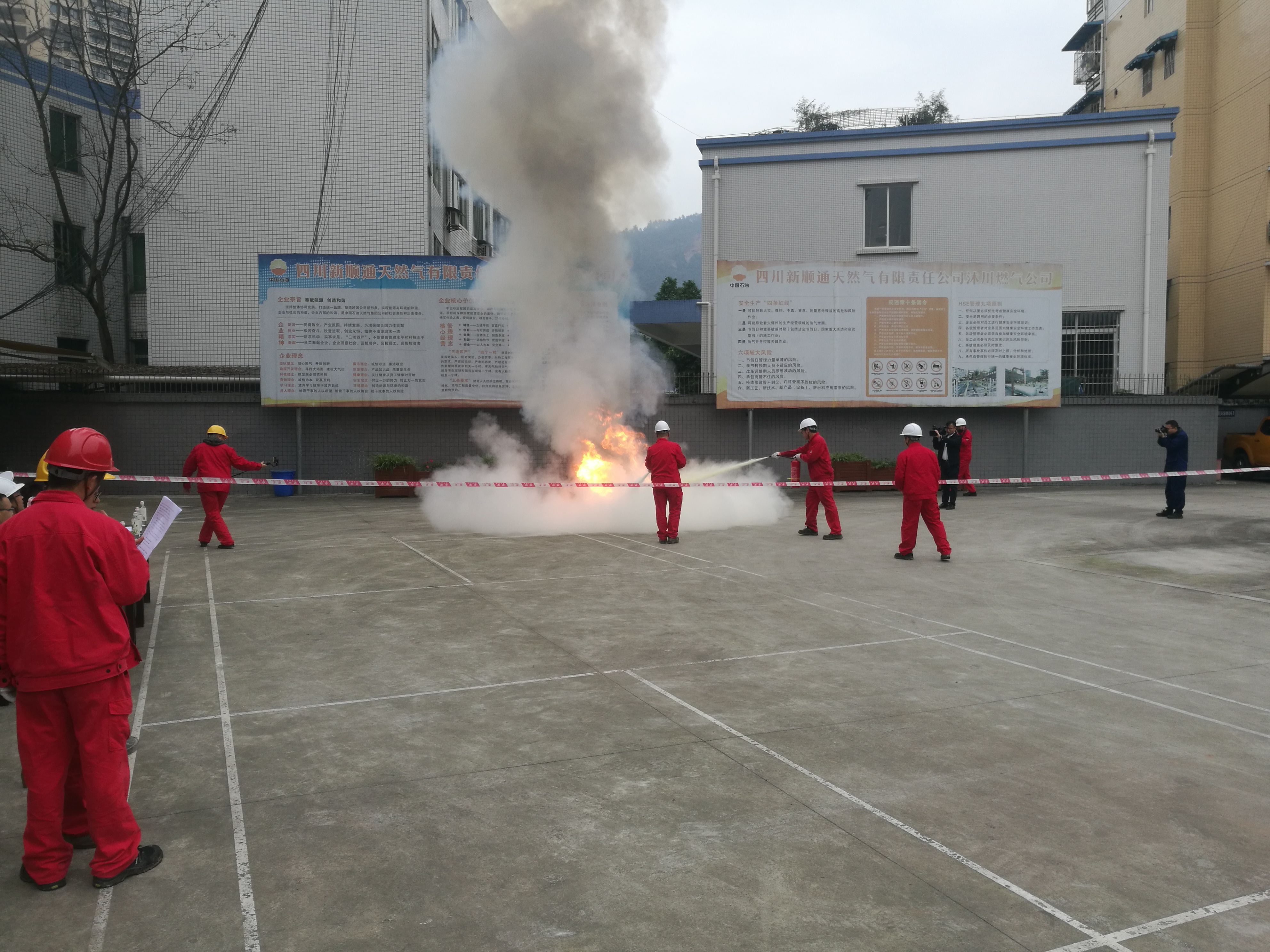 本次演练依照《沐川燃气公司火灾事故应急处理预案》和《沐川燃气公司“11.9”消防演练方案》,由公司总经理刘明富任总指挥,成立消防灭火组、后勤服务组、宣传工作组,共计50余人参加演练。