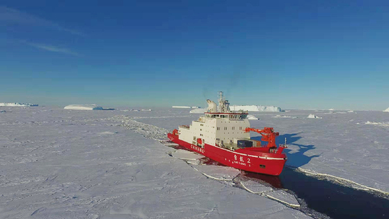 “雪龙2”号完成中山站航道破冰 “雪龙”号冰上卸货全面展开