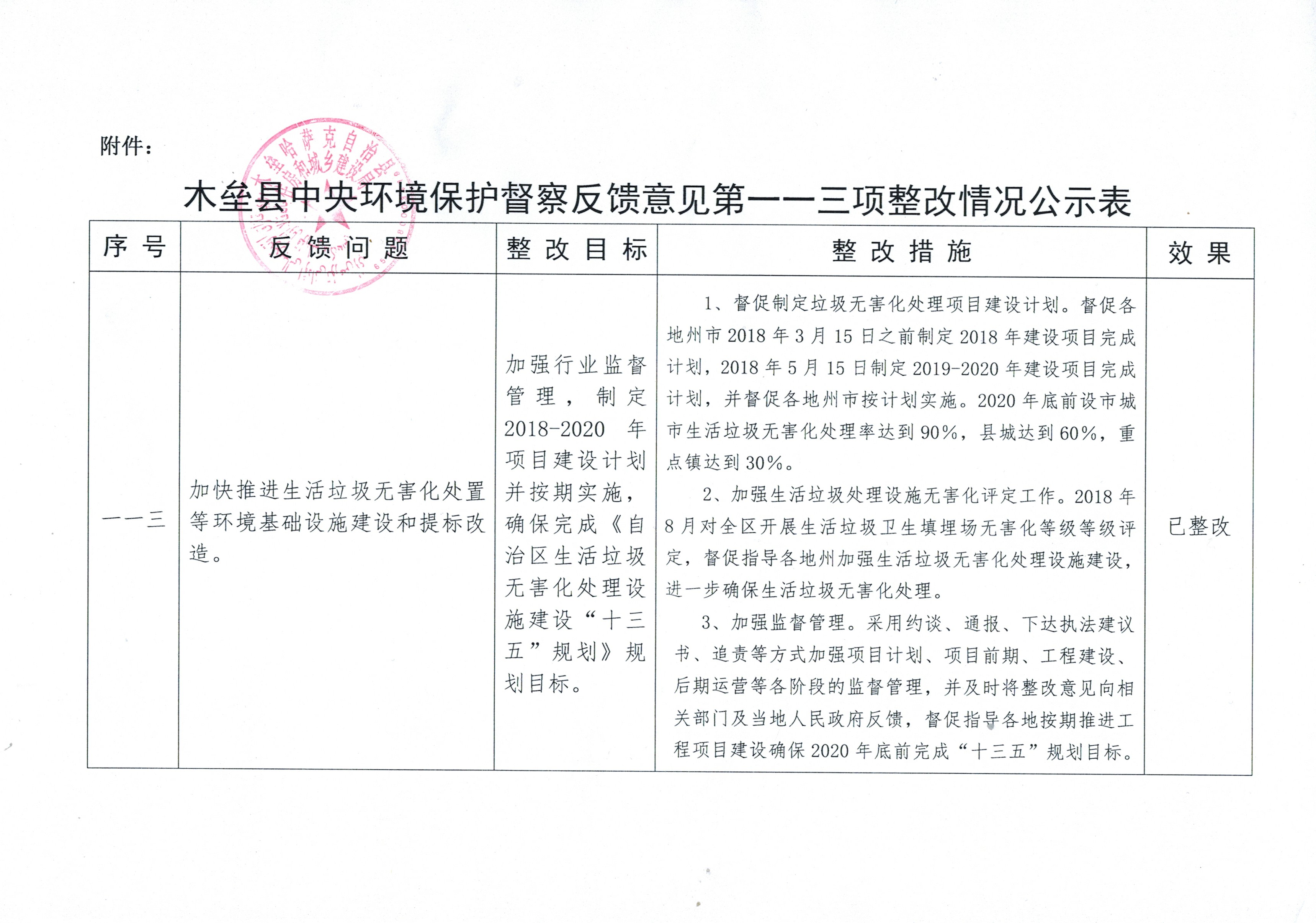关于木垒县中央环境保护督察反馈意见第一一三项整改情况公示