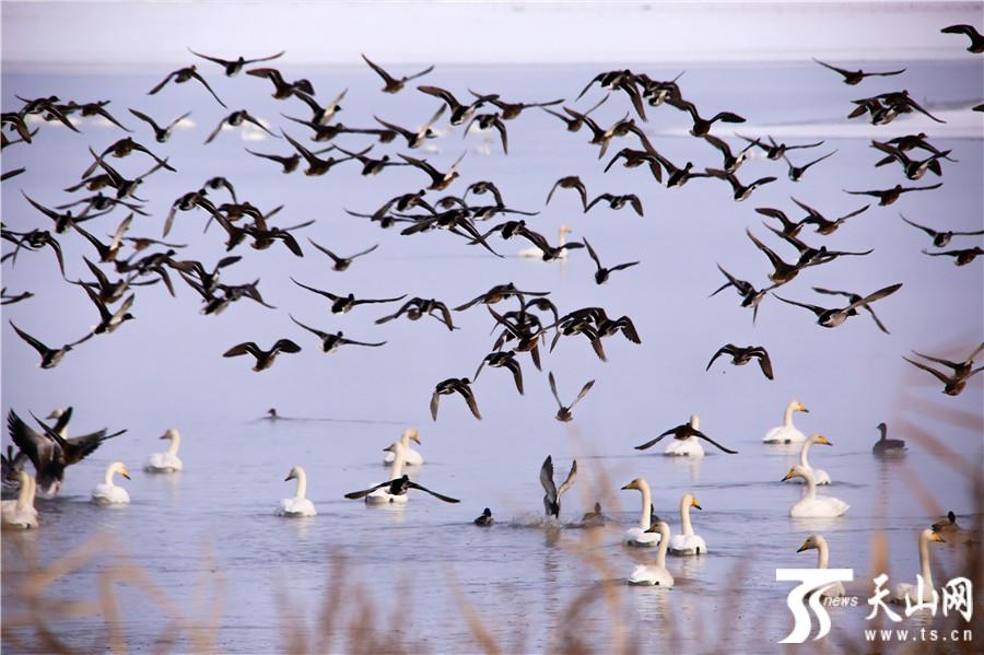 【疆遇风光】越冬天鹅“迷恋”玛纳斯县国家湿地公园 (组图)
