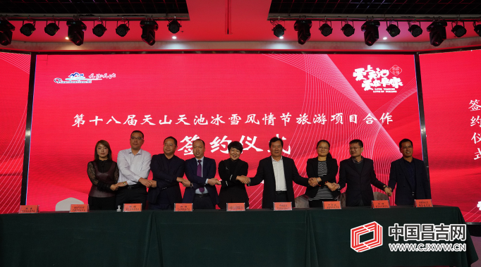 图为天池管委会与西域旅游股份有限公司、五江温泉城等36项活动承办方成功签约。李思佳 摄