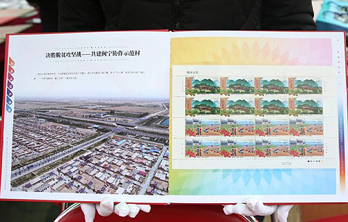 《精准扶贫》邮票纪念册(11月29日摄)。新华社记者 贾浩成 摄