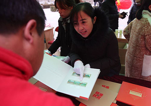 一场降雪即将来临,冷风嗖嗖地往人脖子里钻。这样的天气里,宁夏银川市永宁县闽宁镇的广场上却十分热闹,这里的人们只为看一枚对他们意义非凡的邮票。