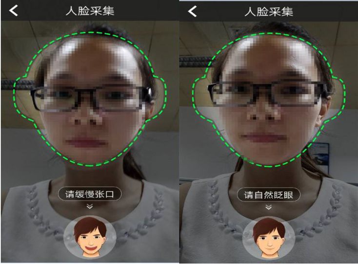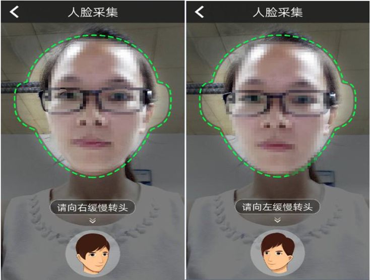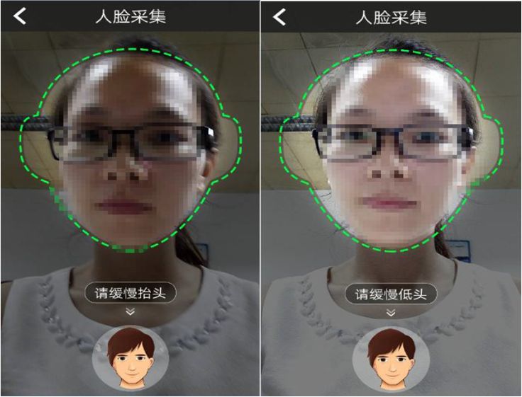 5)系统检测到人脸后,轮廓将变成绿色,开始认证,请按文字和语音提示完成动作: