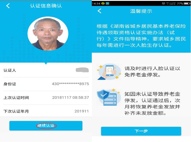 2)确认需认证的人员信息正确后,点击【继续认证】图标,进入温馨提示: