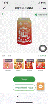 “青岛啤酒私人定制——年会特别版”支持用户在线自主下单,进入平台后选择企业年会的定制模板,根据页面导引上传照片、编辑文字,只需几步简单的操作,一份独一无二的定制版青岛啤酒就完成了,用户还可以实时3D预览定制效果,点击求助设计师按钮还将有设计师进行一对一深度定制服务,让定制变得更简单。