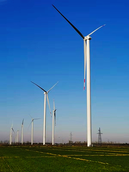 山东东明东南100兆瓦风电项目位于山东省菏泽市东明县马头镇境内,一次性开发建设,安装单机容量2.0兆瓦的风力发电机组50台。项目建设中,贵州工程公司精心组织施工,安全、优质、高效完成各大工期节点:2018年11月2日开始第1台风机基础浇筑;2019年3月16日开始第1台风机吊装;2019年11月19日通过了菏泽市电网公司验收;2019年11月26日通过了山东省电网公司验收;2019年11月29日召开启委会。