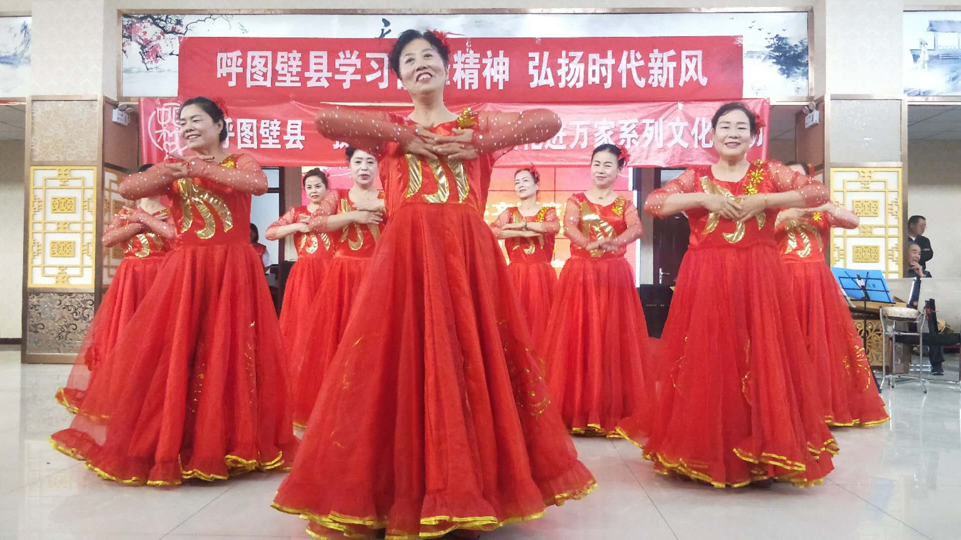 在呼图壁镇熙景社区新时代文明实践站,笑笑艺术团、劲松曲艺团、舞之韵舞蹈队等各文化志愿服务队带来了舞蹈《新疆吆喝》、《快乐的新疆人》、《今天是你的生日》、《我爱你中国》等精彩的舞蹈,以及新疆曲子说唱《四中全会亚克西》、小戏《贴心人》等,给现场群众奉献了一台精彩的文艺演出。