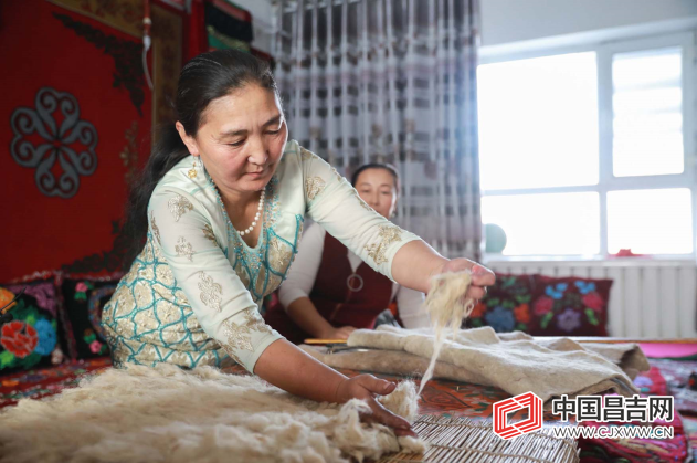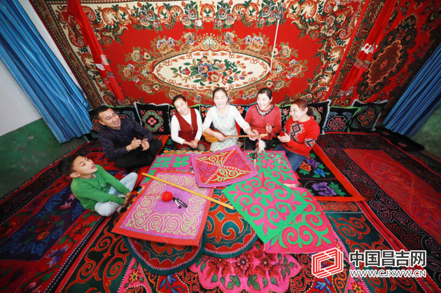 制作花毡耗时长、费体力,很多年轻人都不愿学习。但是,玛依努尔和她的姐妹们认为,花毡不仅是日常用品,更是哈萨克族文化的传承,所以她们在自家门口成立了合作社,现在合作社里已经有二十多人了。她们制作的花毡不仅自用,还在集市上售卖。花毡成了她们增收致富的好“帮手”。