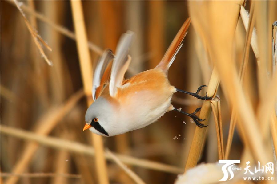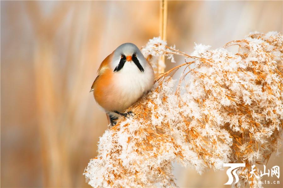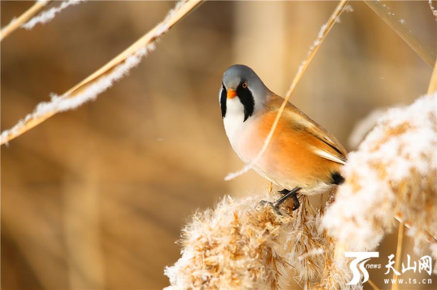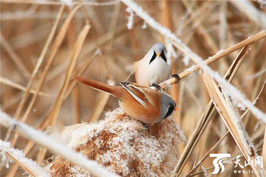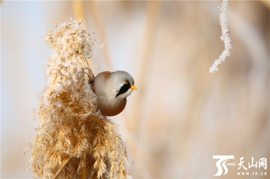 天山网讯(通讯员袁彬峰摄影报道)11月29日,在新疆昌吉回族自治州玛纳斯县国家湿地公园拍摄的文须雀。入冬后,玛纳斯县国家湿地公园披上了冬装,各种野生禽鸟也出来撒欢了,在冬日温暖的阳光下,文须雀等可爱的小精灵穿梭在树林和芦花丛中觅食嬉戏,萌态十足。