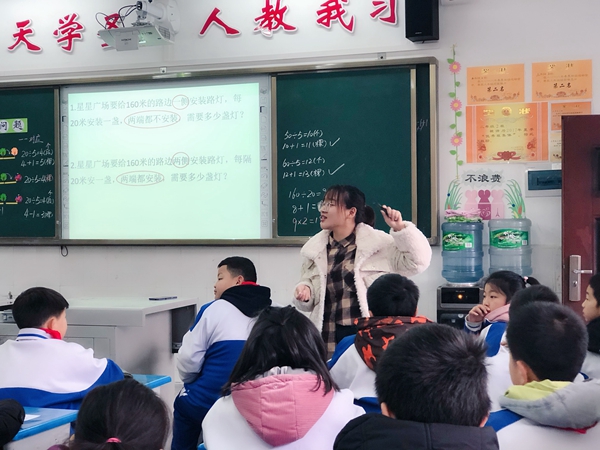 在数学课堂教学研讨活动中,沐川二小叶肖芳老师和夹江外校吴霞老师采用同课异构的形式,分别执教了人教课标修订版五年级上册《植树问题》一课。随后,针对课堂教学,两校进行了讨论交流,对两节课进行了全面的分析与研讨,也对提出了中肯的意见和建议。