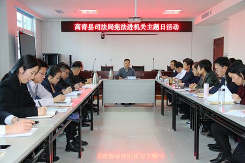 在第六个国家宪法日来临之际,为弘扬宪法精神,加强机关工作人员的法治宣传教育,围绕“弘扬宪法精神,推进治理体系和治理能力现代化”主题,12月4日,高青县司法局组织开展了宪法进机关主题日活动。