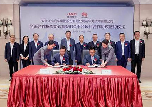 12月9日,安徽江淮汽车集团股份有限公司(以下简称“江淮汽车”)与华为技术有限公司(以下简称“华为”)在深圳正式签署全面合作框架协议暨MDC平台项目合作协议。双方将在智能汽车解决方案、企业信息化、智慧园区、智能工厂等领域展开深入合作,以全新合作推动智能汽车领域的快速发展。