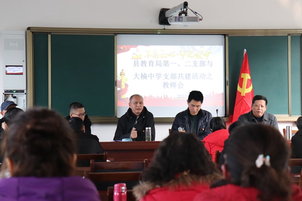 为切实加强支部建设,提高党员先锋模范意识,强化教师队伍思政工作。2019年12月12日,县教育局机关第一、二党支部党员13人,其他工作人员7人,由教育局党组成员、副局长兰勇带队到大楠初级中学开展支部共建活动。