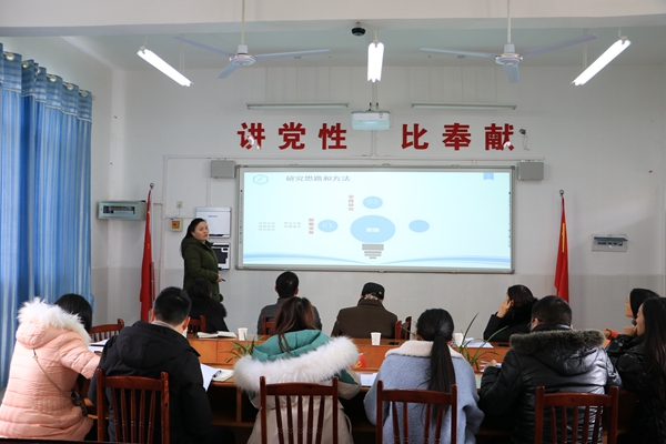 吴容老师作了开题报告,解读了课题的成因,从本课题选题的依据和创新点,针对课题的研究内容、研究思路和方法、预期成果、可行性分析和研究进程方面作了详细介绍。