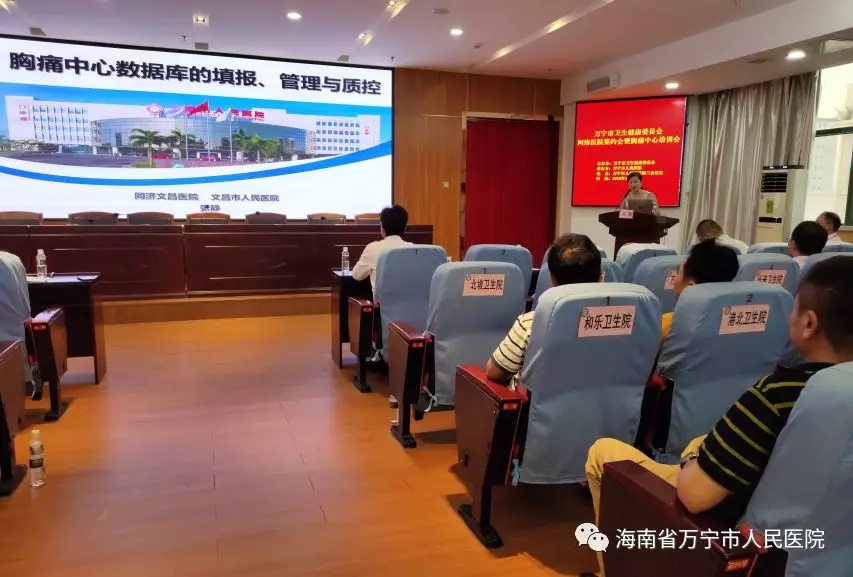 文昌市人民医院胸痛中心数据员张静进行《胸痛中心数据库的填报、管理与质控》培训,为大家讲解了数据库的重要性、录入数据库管理的病历区分、如何保证数据完整性的条件等等,为今后胸痛中心的规范化建设提供基础条件,从而符合认证标准。
