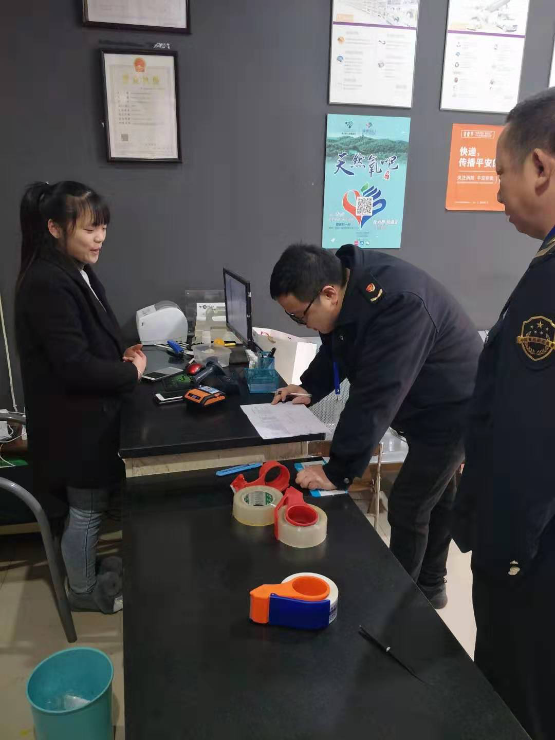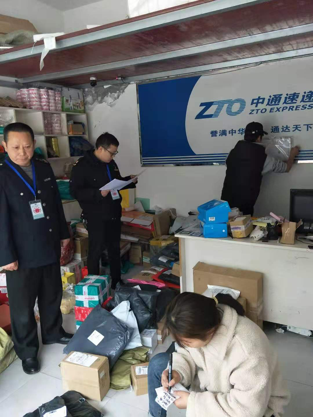 县乡同步查,检查城区快递公司5家,乡镇快递代办点14家(个),对辖区内的末端快递整治一个不漏;