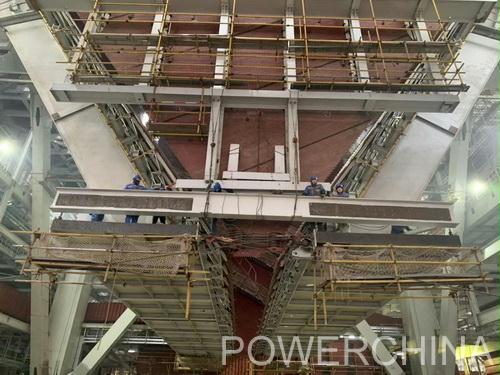 2019年12月26日,比原计划提前5天实现了锅炉冷灰斗封门,标志着受热面吊装的结束,为实现锅炉水压目标奠定了基础。