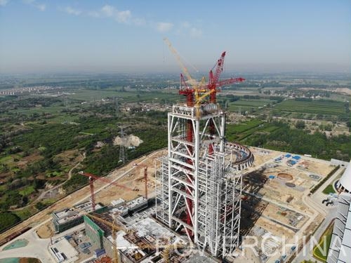 2018年8月31日,冷却塔桩基工程开始施工,标志着国内第一高塔进入到施工阶段,到2019年12月24日筒身比原定计划提前一周顺利完成100板(160米)。