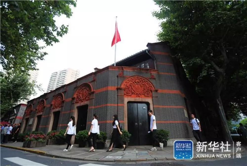 ?↑这是6月22日,上海大学志愿者来到中共一大会址纪念馆开展暑期志愿讲解服务。新华社记者 刘颖 摄