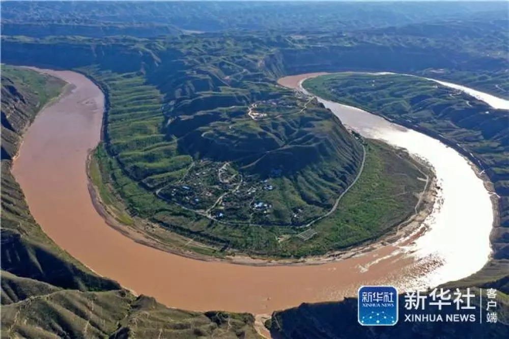 ?↑这是8月28日拍摄的山西省永和县阁底乡境内黄河乾坤湾(无人机照片)。新华社记者 曹阳 摄