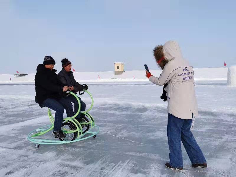 现场工作人员唐晓君说:“挂了一些彩旗,灯笼,还有五项活动区域上面的各色彩旗,雪地摩托还有滑雪圈儿、冰上爬犁,基本已经全部准备就绪了,游客现在随时来,我们随时接待。”