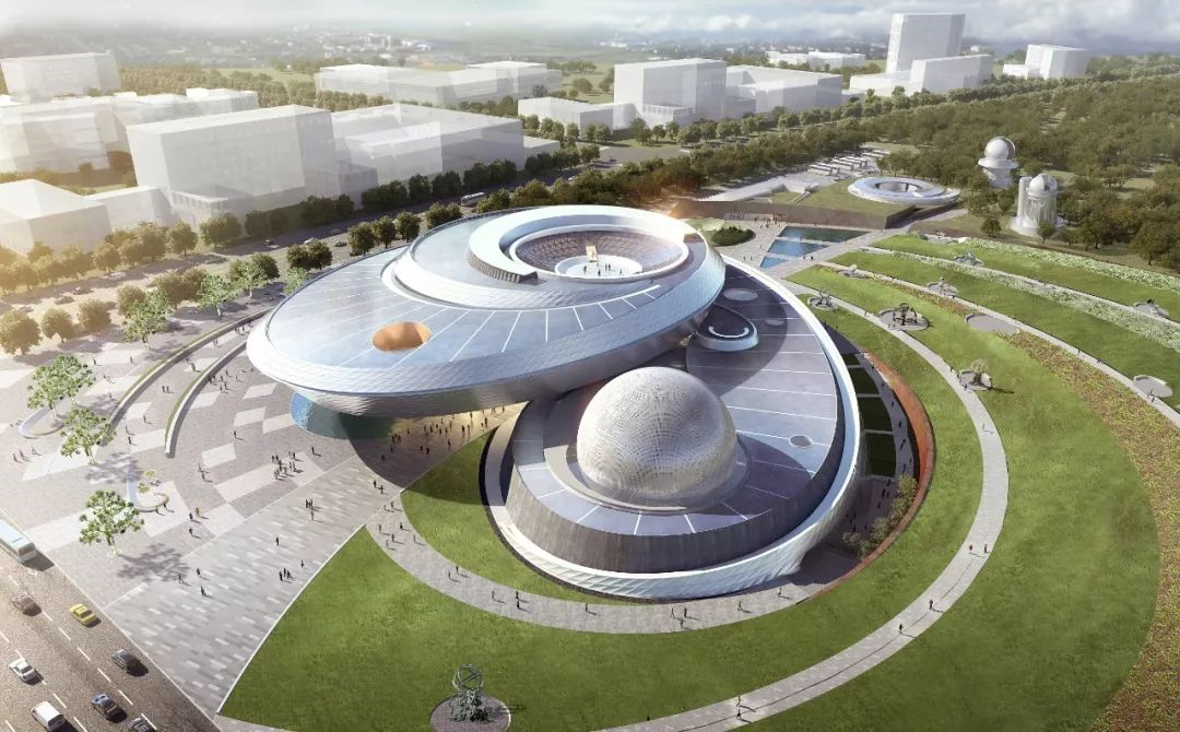上海天文馆项目位于浦东新区临港新城临港大道与环湖北三路口,总建筑面积3.8万平方米,其中地上2.6万平方米,地下1.2万平方米,由1幢3层主体建筑,以及青少年观测基地、大众天文台和魔力太阳塔等附属建筑组成,建成后将成为全球建筑面积最大的天文馆。天文馆的建筑构造极其复杂,其中大悬挑结构更是极为罕见,由二层双向桁架结构组成,跨度约61米、属目前全国最大,平面悬挑最大约有36米,其两侧与钢骨剪力墙结构体系相连,外侧为单排四层桁架立柱和外弧桁架结构,内侧与相邻结构的混凝土梁、柱通过预埋件相连,钢骨剪力墙核心筒作为整个结构的支承结构,支托起了整个大约2000吨左右的主体钢结构。