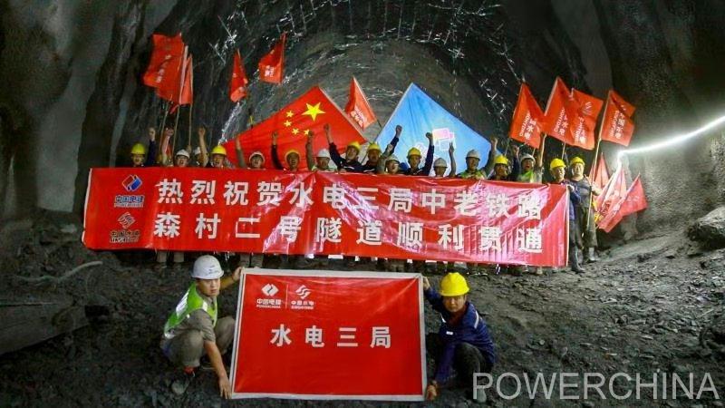 在老中铁路有限公司的领导下、在中国电建老中铁路工程指挥部的指导下,自2017年3月15日开工以来,中国电建发挥了在老挝二十余年深耕细作的资源优势和工程建设能力,以“建精品工程,铸廉洁之路”为核心,精心组织施工,加强施工管理。严格落实机械化、工厂化、信息化、专业化管理要求,强化现场安全质量管控、广泛使用隧道施工成套工装、大力开展科技攻关、积极推广“四新”技术应用、狠抓工序管理。采用“短进尺、弱爆破、强支护、勤量测、快封闭”的方法,确保施工生产优质安全推进,森村二号隧道创下单洞单头月掘进245.8米最高进度,为胜利贯通打下了坚实基础。