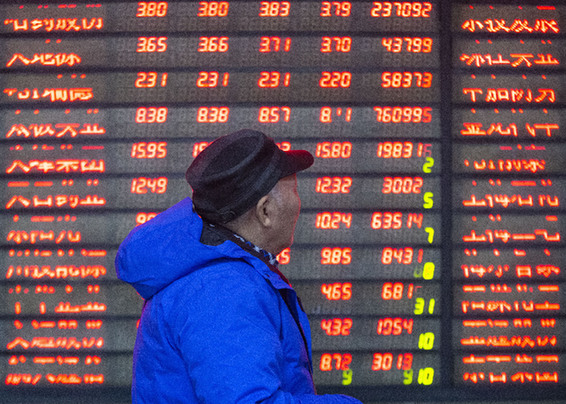 1月2日,股民在南京一家证券营业厅关注股市行情。