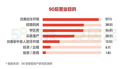 单从90后来看,改善自住,结婚购房是主流。90后群体中选择返乡置业的人群占比67.5%,返乡置业的主要原因为大城市的房价较高,压力较大,而回乡买房的价格更容易接受。90后购房除了改善自住环境外,为结婚而购房排在第二名,占比38%。