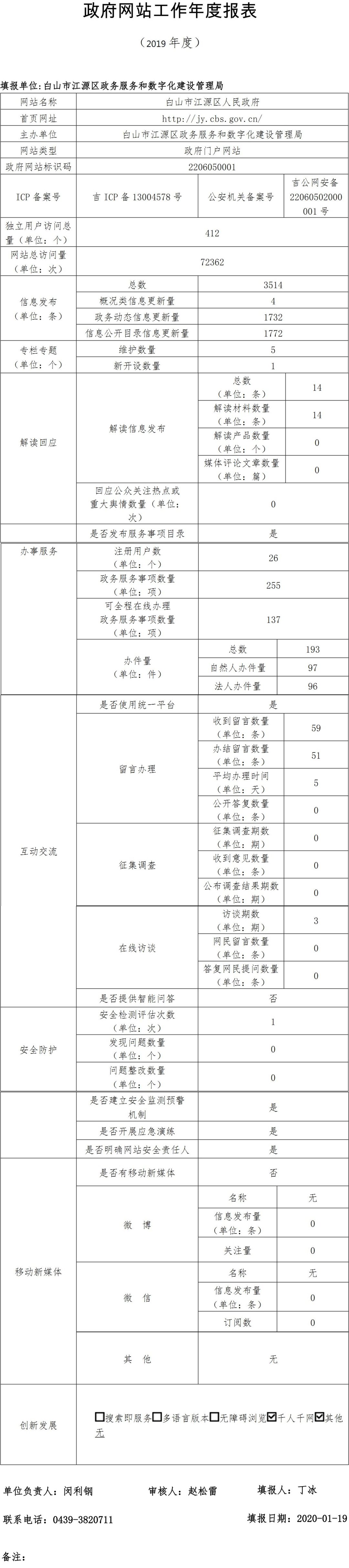 2019年度政府网站工作年度报表