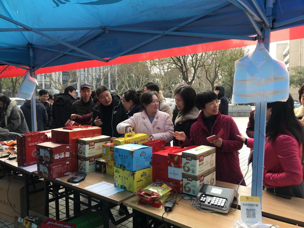 为了能让广大教职工不用出校门就能购买到实惠的年货,商贸部通过前期的市场调研和精心准备,与供应商协商以最低的价格供应师生,现场准备了香榧、红枣、黄酒、坚果炒货礼盒、桂圆、荔枝、五常大米、水果等50余种商品。