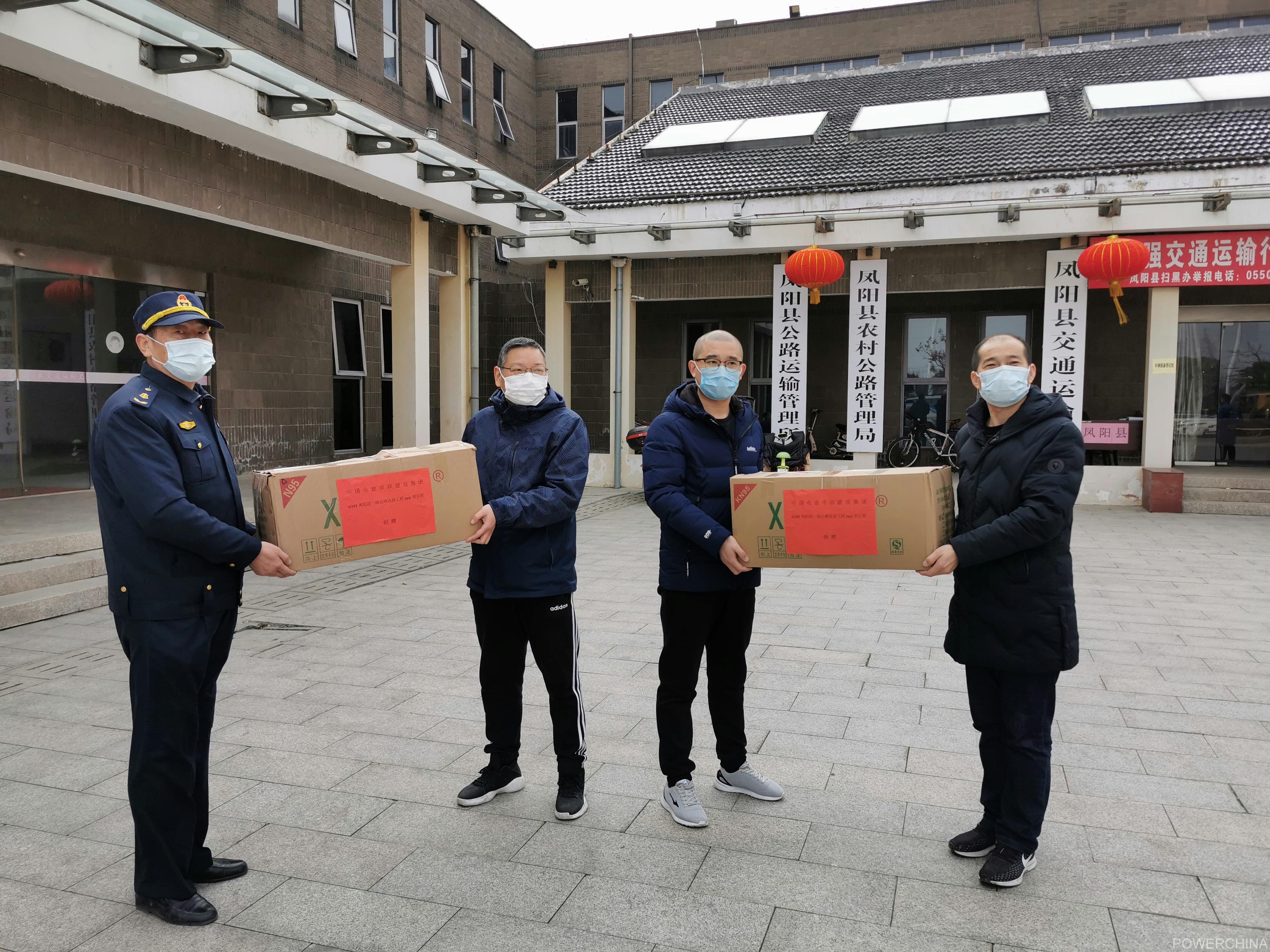 2月5日下午,电建市政公司凤阳PPP项目为凤阳县交通运输局工作人员送去2000个口罩,切实履行社会责任,用行动助力新型肺炎疫情防控阻击战!