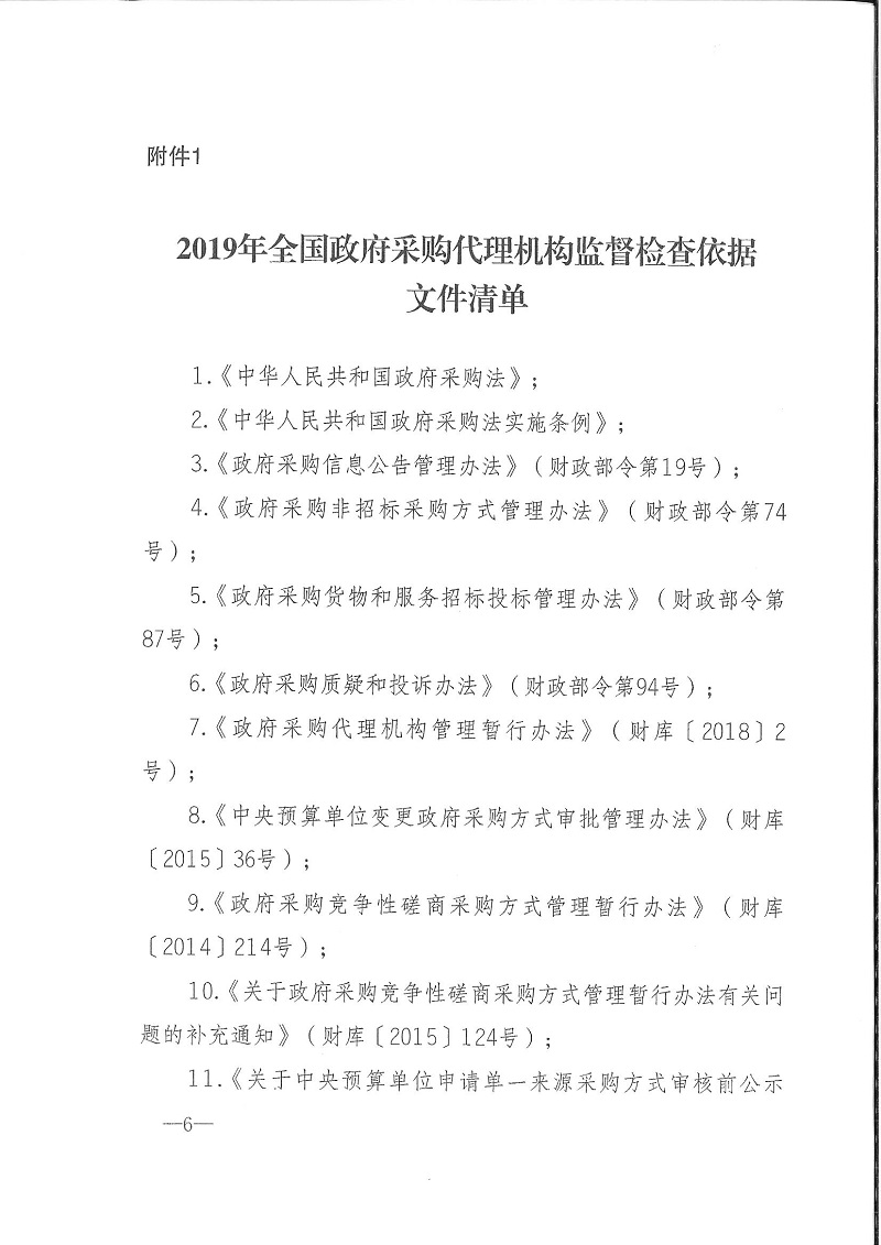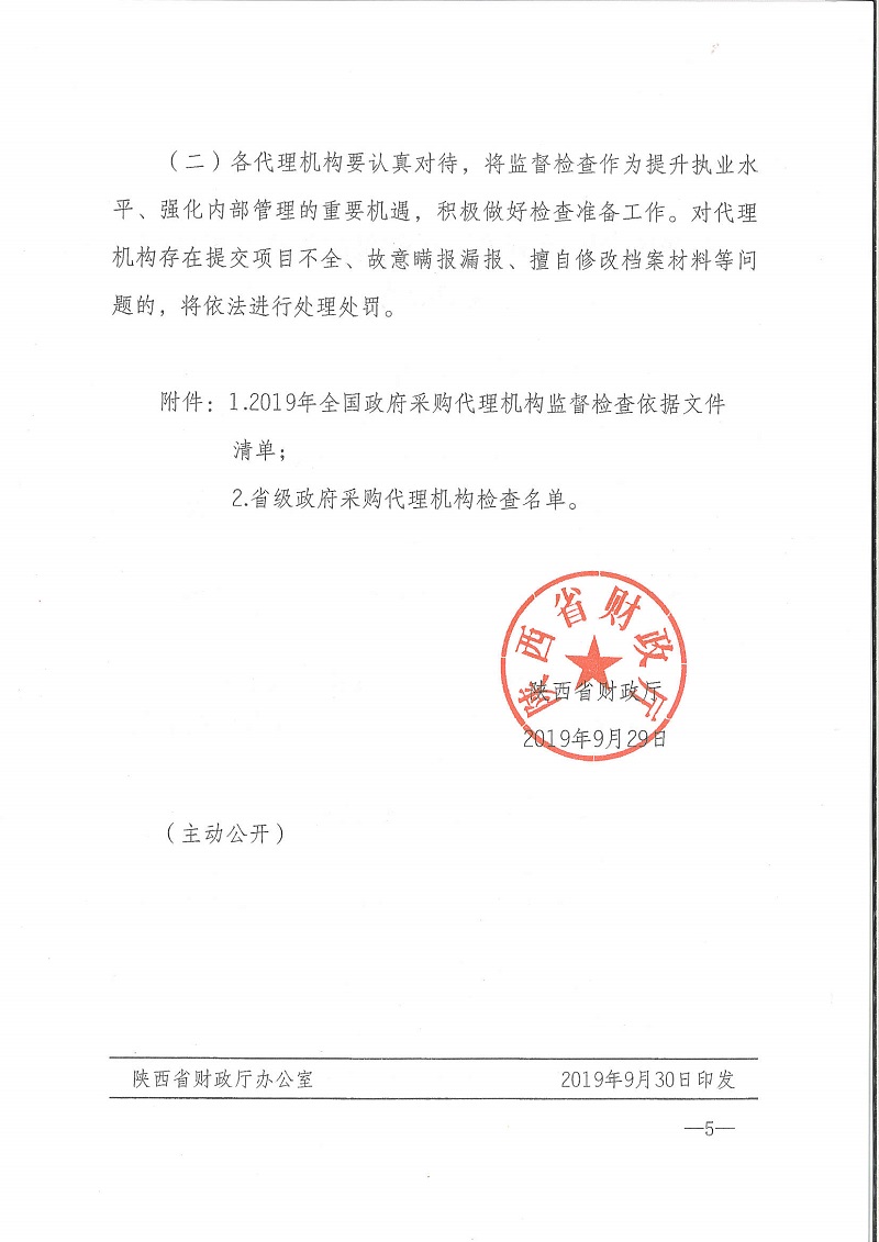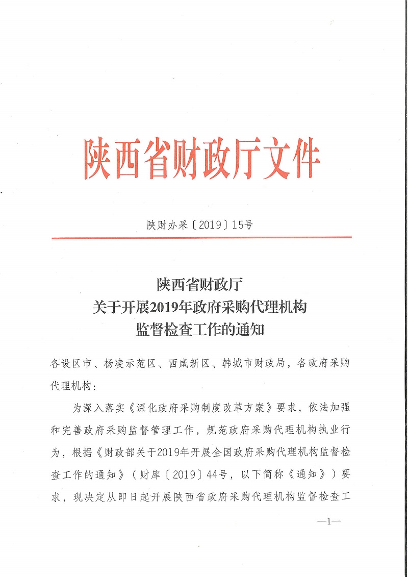陕西省财政厅关于开展2019年政府采购代理机构监督检查工作的通知