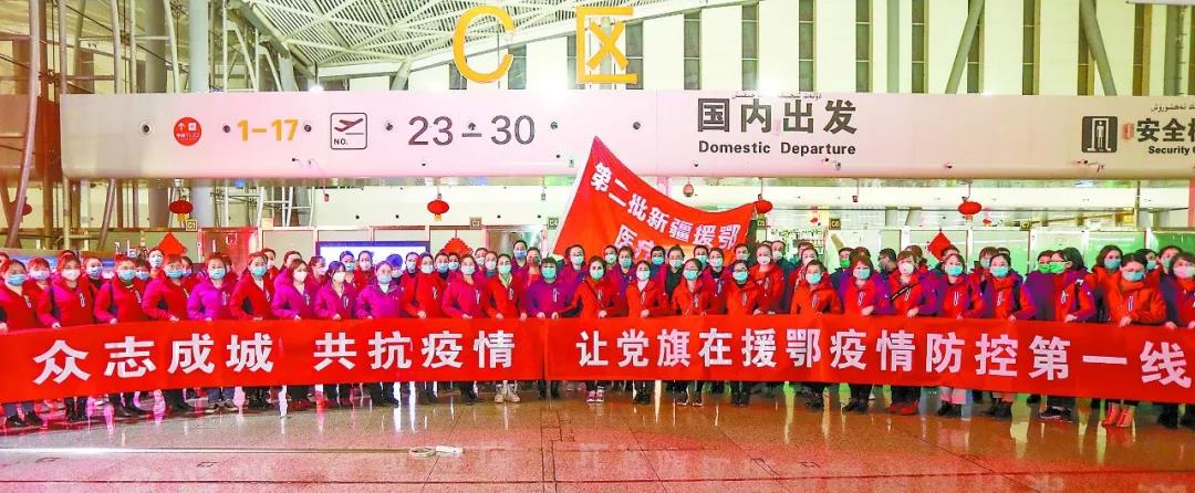 1月28日,新疆首批142名援鄂医疗队队员踏上征程。新疆日报全媒体记者韩亮摄