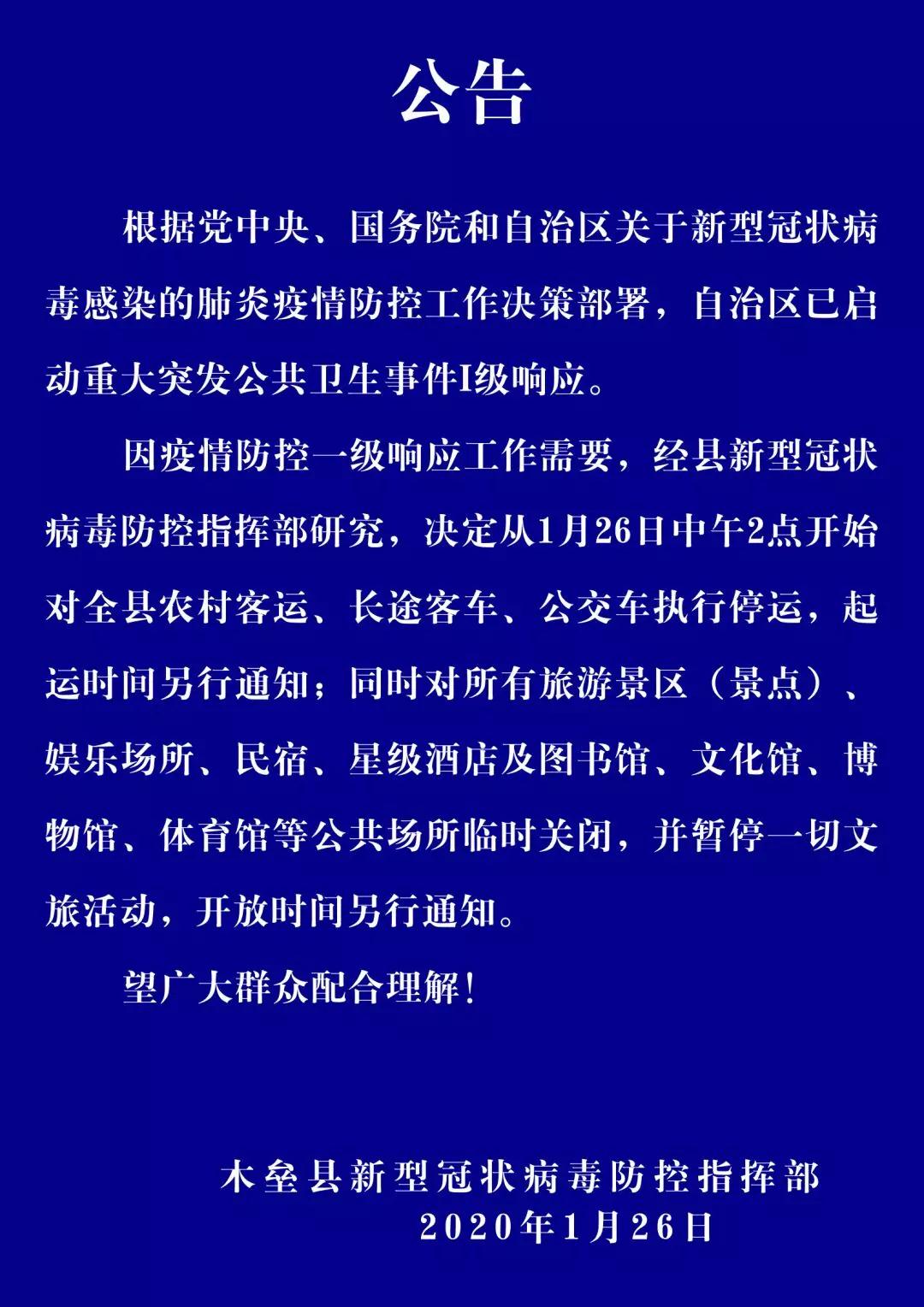 【公告】关于道路交通、公共场所暂时停运的公告(双语)