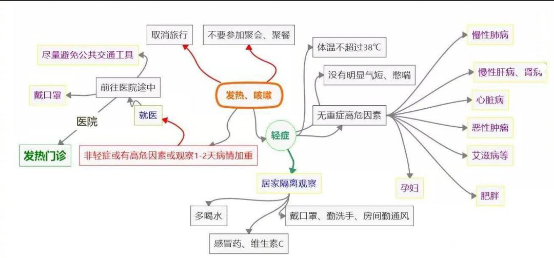 2019-新冠肺炎目前主要通过呼吸道传播,如咳嗽、打喷嚏等飞沫传播,但也可通过近距离密切接触传播。如果出现发热、咳嗽、咽痛等症状,建议按照如上流程先自我评估,决定是否再去医院。
