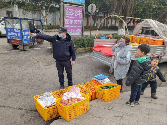 (制止占道经营并宣传防控知识)
