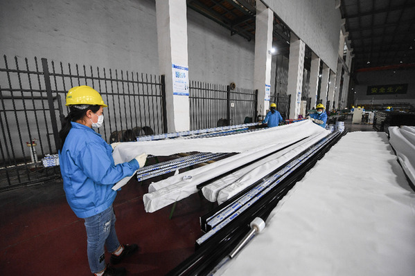 3月31日,工人在位于湖州市织里镇的万邦德·栋梁铝业公司的车间内忙碌。该企业从2月份开始就积极包车包机组织外省员工复工复产,同时还给员工提升生活补助。截至目前,公司已招录新工628人,复工率达到100%,产量较去年同期增长30%左右。