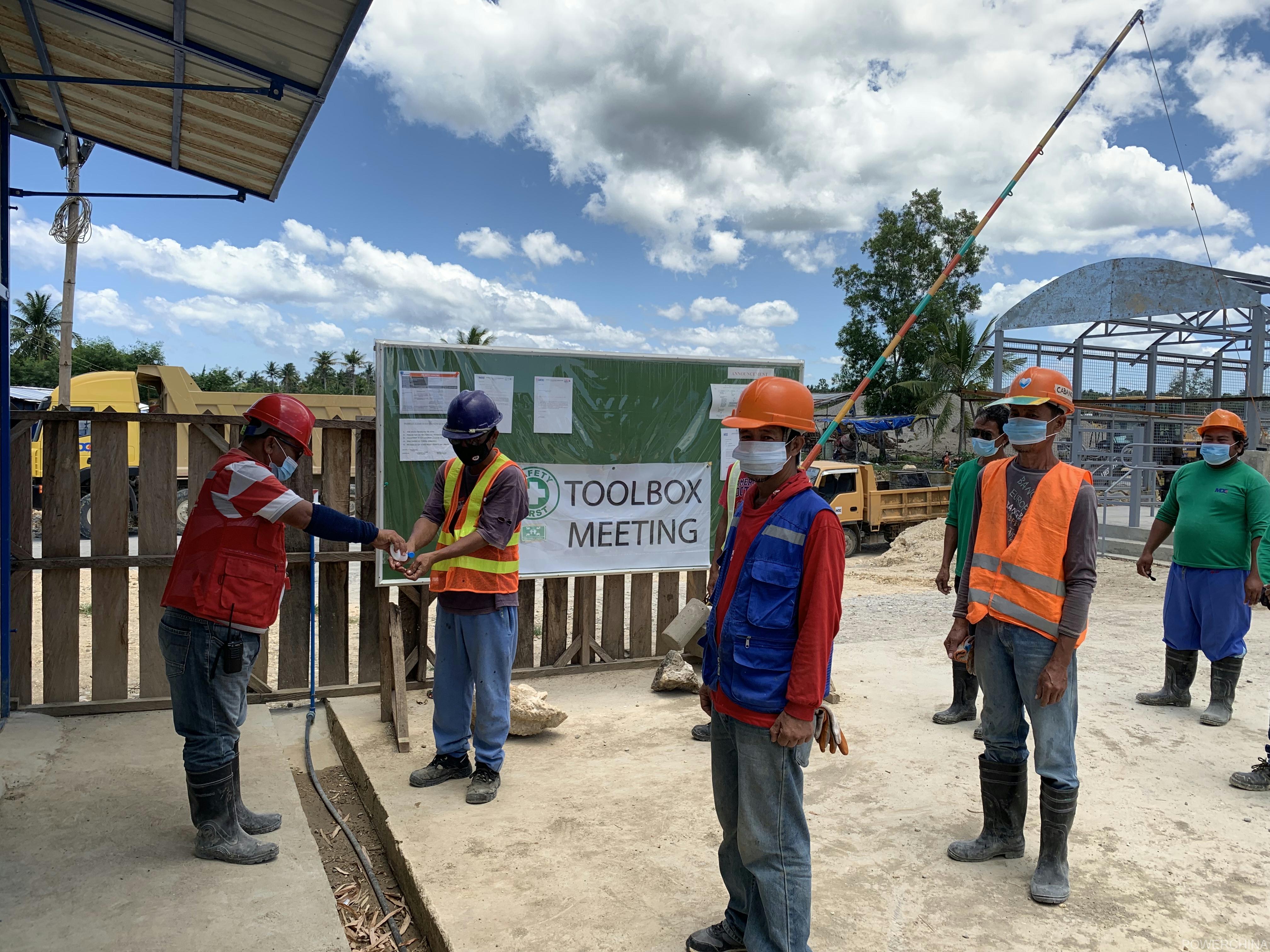 印尼哥伦打洛项目——项目部积极配合当地政府部门的疫情监督和防控工作,并积极落实公司疫情防控各项措施,结合实际迅速制定《疫情防控应急预案》、《疫情防控期间项目人员及进出车辆管理细则》,为返岗复工人员配置专属隔离房,设置返岗复工人员隔离房,落实发放口罩等防疫物资,保障防疫工作落实到位。项目部还积极储备、调配大米、纯净水等物资,确保了施工作业人员生活物资有保障,在各项防控措施落实到位的前提下,现场各项工作正在有条不紊地快速推进。