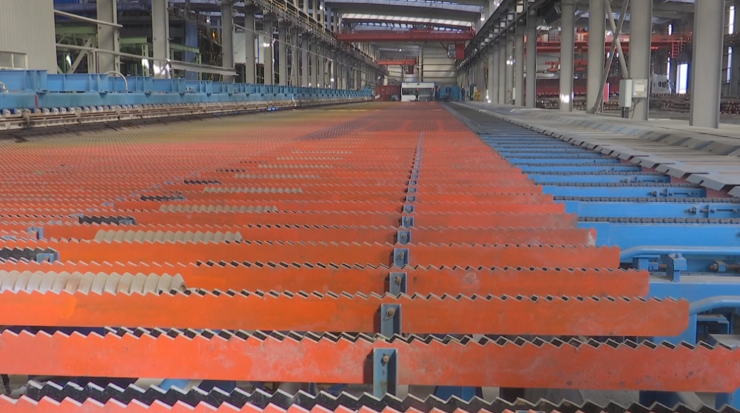 废铁在炼钢厂里进入康思迪自动上料预加热系统,从钢水变成了钢胚,通过辊道输送轧钢车间,经过连铸连轧、预精轧等多个程序,钢胚被塑形为线材和棒材。