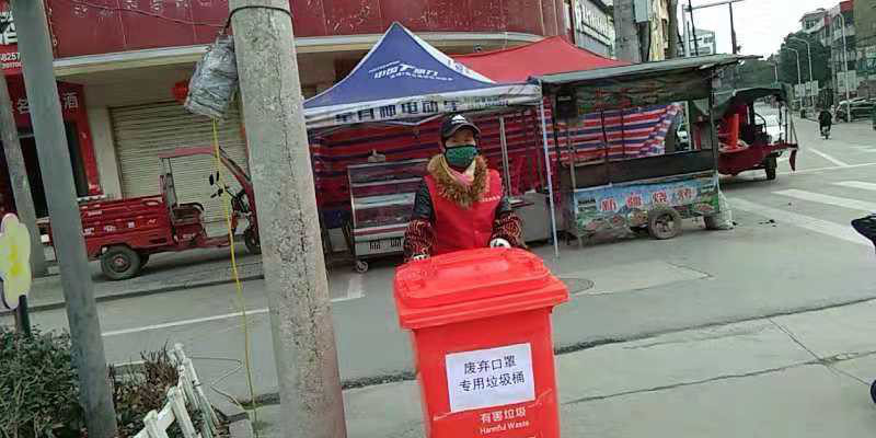 2、城区各路段设置“废旧口罩专用垃圾桶” 3、城管执法人员劝导小商贩