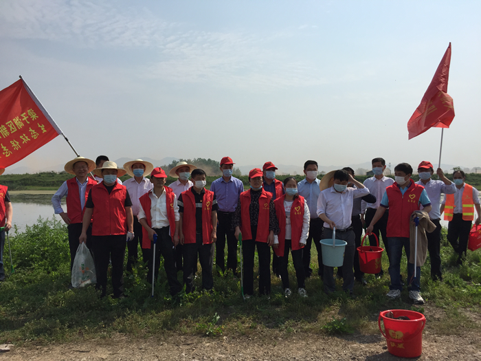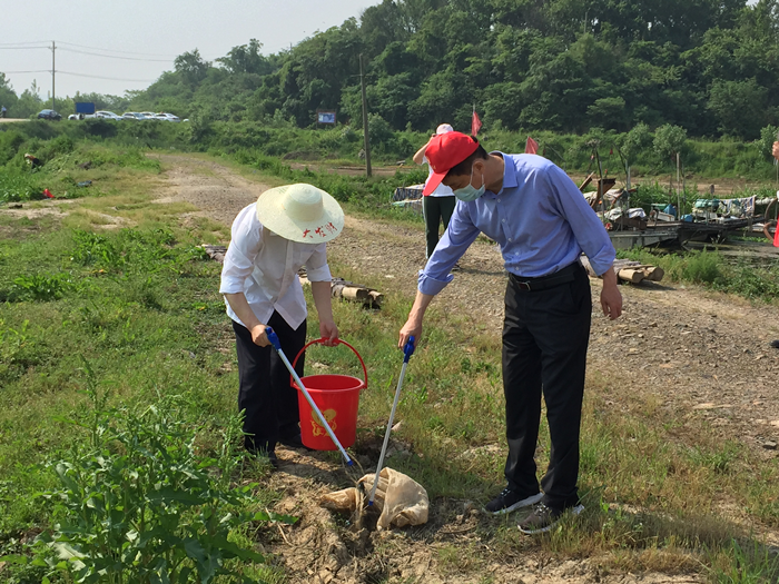 区级双河长带领到场干部拾捡白色垃圾、清理杂草、打捞漂浮物,切实履行河湖长职责,保护梁子湖水生态环境。