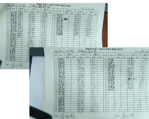 为切实保障广大师生的身体健康和生命安全,确保学校的稳定,全面落实上级“早发现、早报告、早隔离、早治疗”的文件要求。固镇县毛钽厂实验中学坚持做好晨午检工作。
