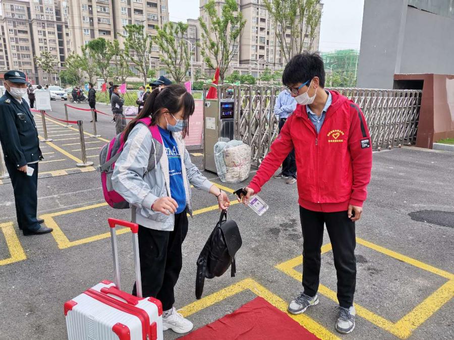 ?早晨6:30,党委书记张斌、全体中层领导班子及全体教职工已全体到岗,为迎接同学们的到来做好准备工作。7:00开始,同学们陆续到达,经严格体测消毒后进入校园,收取“健康卡、承诺书”,同时给同学们发放了教体局提供的防疫口罩。入校后由班主任对各位同学进行了详尽的疫情防控知识讲解。