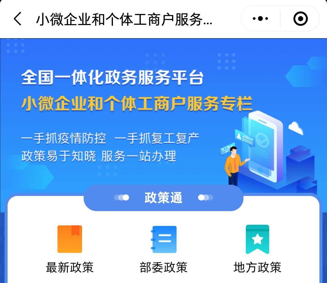 ?为推动解决疫情期间复工复产难题,国家政务服务平台推出“小微企业和个体工商户服务专栏”。